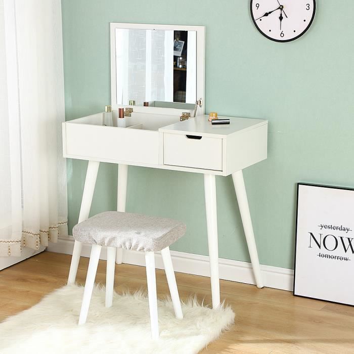Coiffeuse Table De Maquillage Avec Miroir Moderne Blanc 80 40 75cm