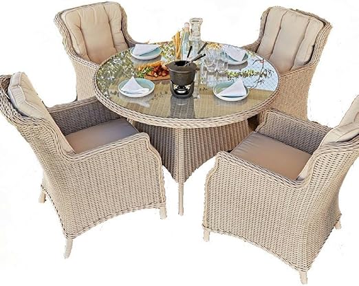 Table Ronde Exterieur Aluminium Et 6 Chaises Rembourrees Tuna