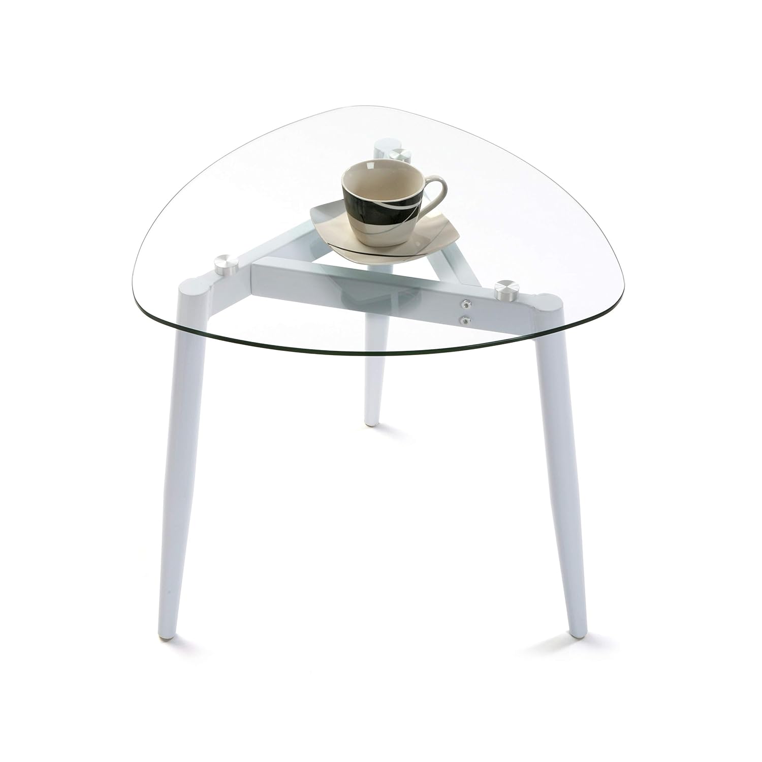 Versa Table Basse Plateau En Verre 3 Pieds Metal Blanc Versa