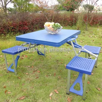 Table De Camping Pliante Portable En Plastique Avec 4 Sieges Bleu