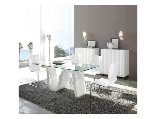 Table A Manger Rectangulaire 180 Cm En Verre Et Bois Blanc Laque