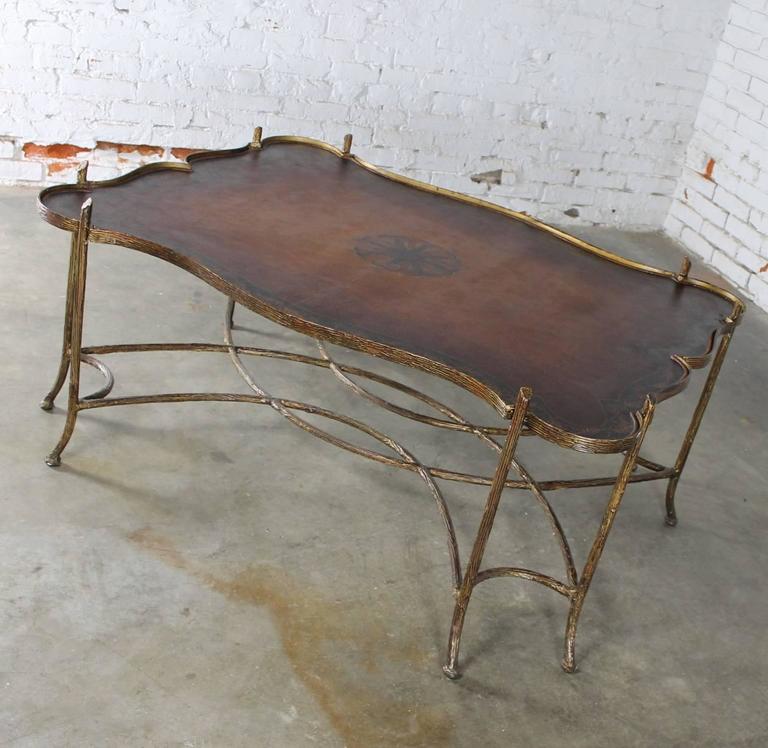 Vintage Gilded Iron Faux Bois Coffee Table With Tole Painted Tray