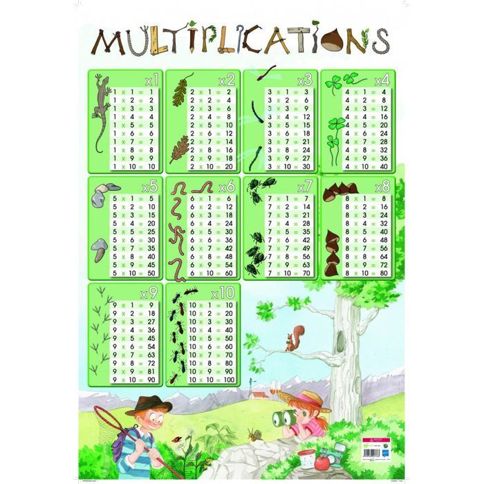 Poster Pedagogique Tables De Multiplications 52 X 76 Cm 52 Cm