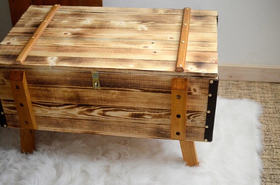 Rustic Wooden Chest Trunk Blanket Box Vintage Coffee Table